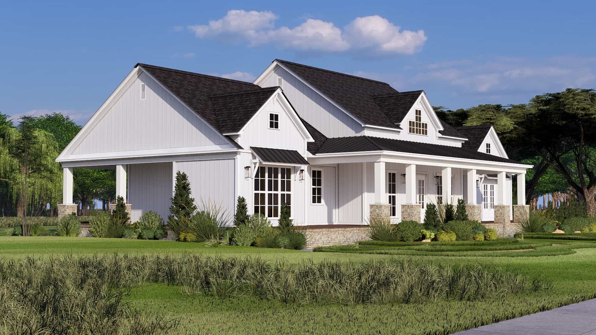With its enduring allure, this Modern Farmhouse style house plan spans 2,481 square feet and boasts 3 bedrooms, 3.5 baths, and a 3-car garage. Furthermore, it presents a delightful array of features, reflecting sophistication in every corner: