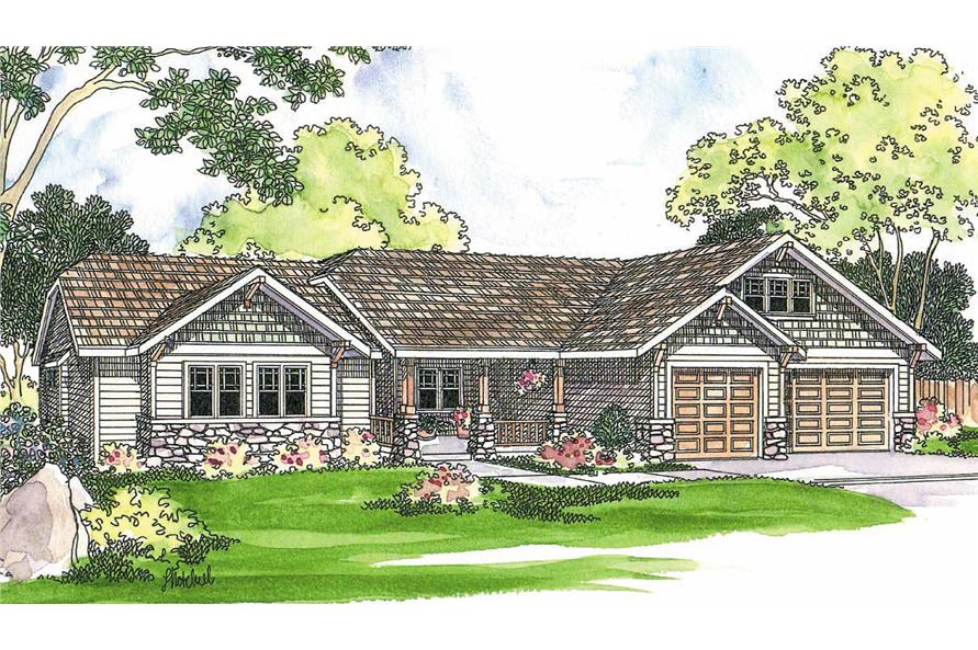 The #108-1252 home plan is a single story, craftsman style house plan with 2481 total living square feet. This craftsman home plan features a harmonious melding of craftsman and contemporary exterior styling. At its core, a vaulted skylight living room is rimmed by the wide rear windows. There is also a large kitchen & nook with a 2-sided fireplace across from the conversation bar.