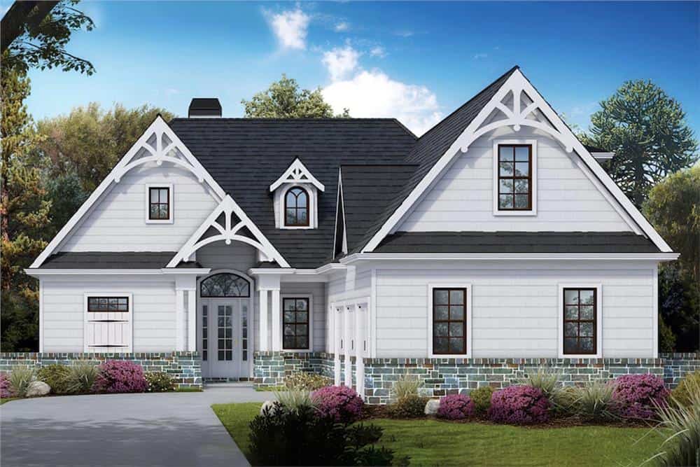 This stricking Modern Farmhouse style home with Country characteristics (Plan #198-1053) has 2498 square feet of living space. The 1.5 story floor plan includes 3 bedrooms and