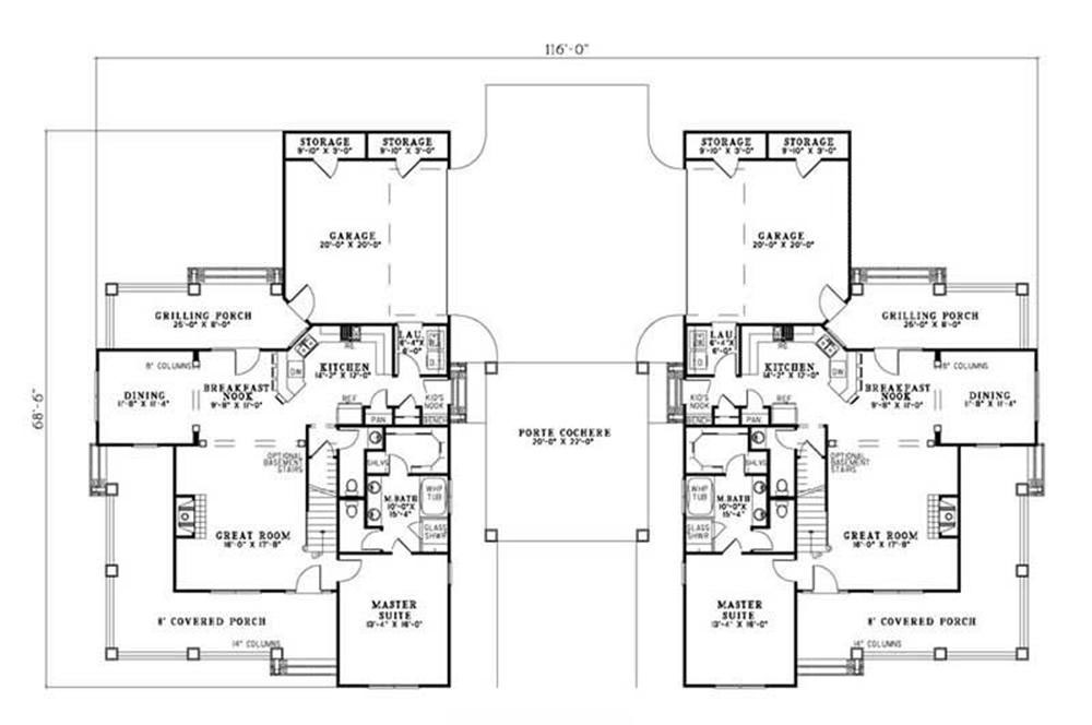 This beautiful Duplex offers two homes connected by a Porte Cochere. Both homes are identical in square footage and style. Both include Covered Porches with 14-inch Columns, Great Rooms with Fireplaces, Breakfast Rooms with access to Grilling Porches, Kid's Nook on the upper floor with Shelves, and Computer Center. Bedroom 2 is complete with a Window Seat and Shelves, and Bedroom 4 can be used as the Guest Bedroom if the 5th Bedroom/Guest Bedroom is used for the Home Theater.