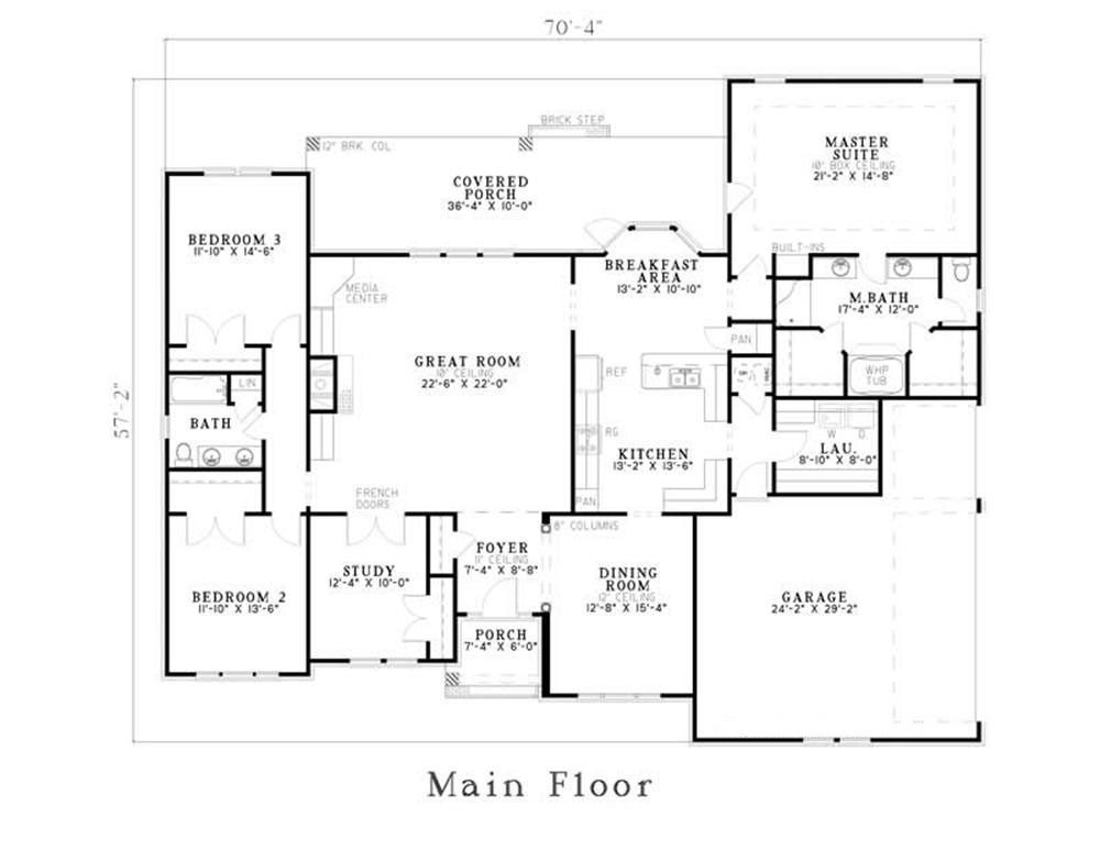 Welcome your guests in the warm foyer of this home before leading them into the impressive dining room with magnificent columns framing the entry. After dinner, your guest will enjoy conversation in the spacious great room complete with fireplace and built-ins. Beautiful French doors open to the quiet study where you'll be able to concentrate on that work away from the office. The rear porch is attainable through the breakfast room and your secluded master suite. The children and guests can enjoy their own privacy with this split bedroom design.