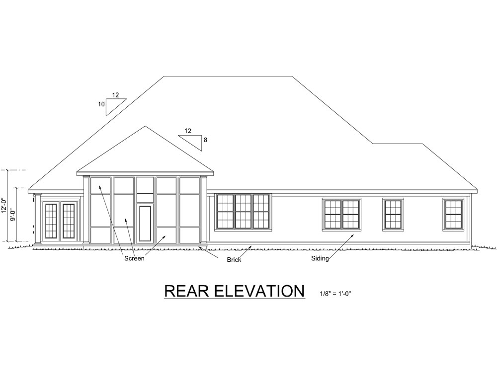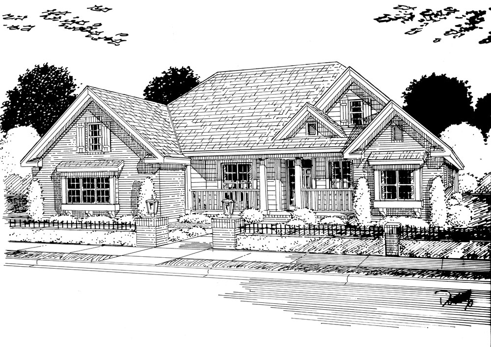 Enter this ranch-style home floor plan, and you are greeted by a foyer with a half bath, access to the dining room and access to the master suite. Continue inward, and you’re in the heart of the home. The living room features dramatic 12-foot ceilings and a built in fireplace. The living room has access to the screened porch openly flows into kitchen and breakfast nook. The kitchen features a built in island and a peninsula with eating bar. The kitchen flows into the breakfast nook and has a walk in pantry. The kitchen leads to a hallway that takes you to the three bedrooms....