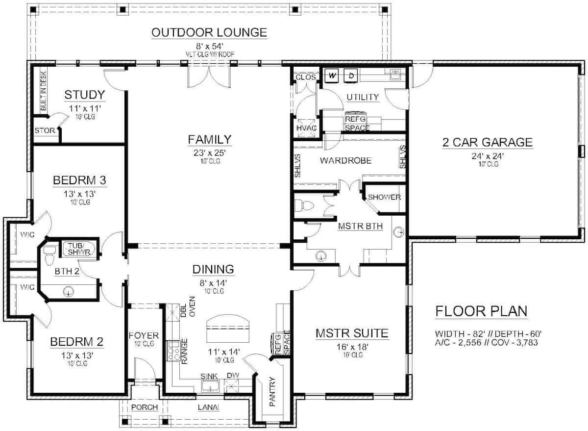 Spacious and relaxed feeling, this Ranch style house is designed to suit families who prefer an informal lifestyle. This endearing 1-story home's floor plan has 2,556 square feet of fully conditioned living space and includes these wonderful features: