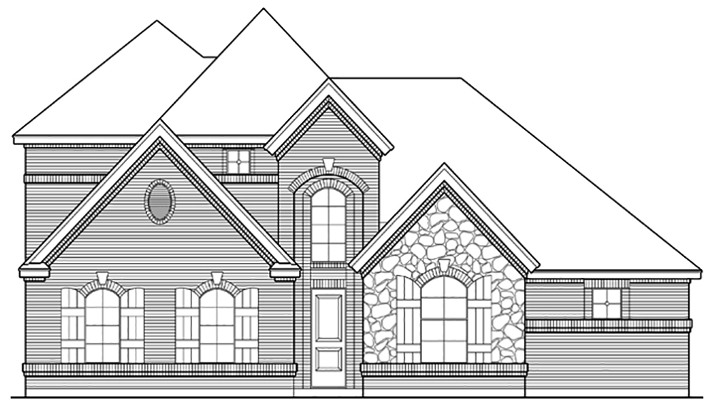 This lovely Tudor style home plan with European influences (House Plan #195-1097) has 2575 square feet of living space. The 2 story floor plan includes 3 bedrooms, 2 full bathrooms, and 2 half baths.