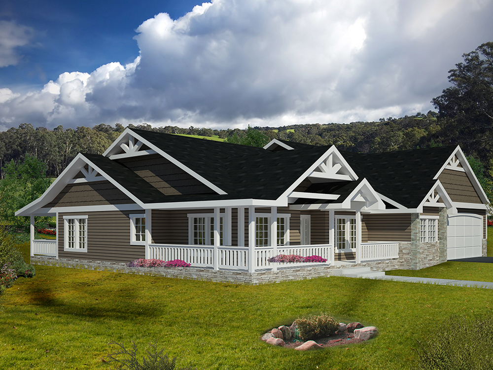 This remarkable Craftsman style home has 2588 square feet of living space. The one-story floor plan includes 2 bedrooms and 2 bathrooms. The exterior of this home has a graceful covered front porch. Inside, this house design's floor plan includes a well-designed main floor master.