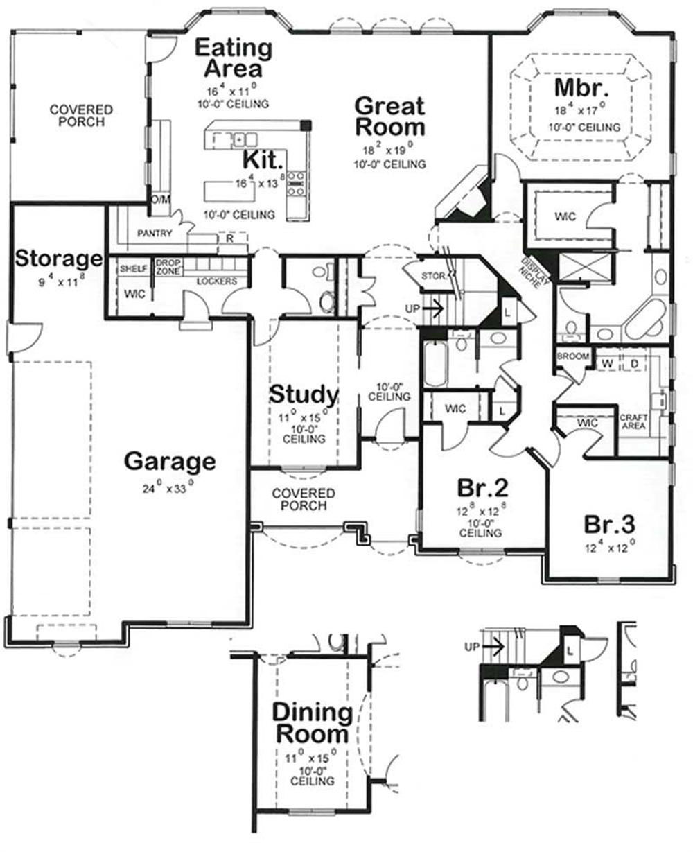This beautiful Country style home plan with French influences (House Plan #120-2122) has 2598 square feet of living space. The one story floor plan includes 3 bedrooms, 2 full bathrooms, and 1 half bath.