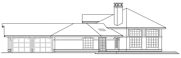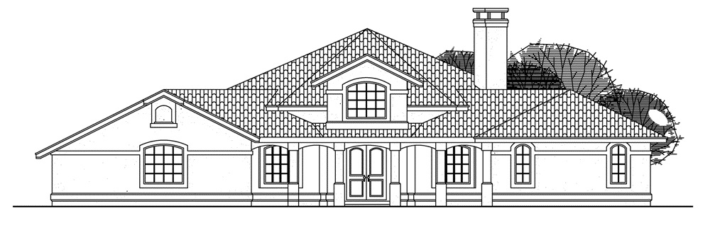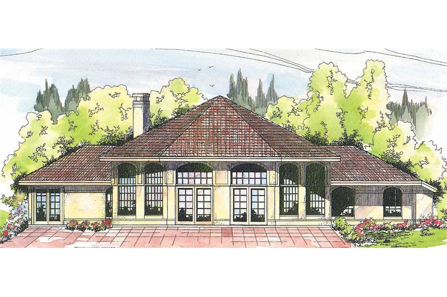 This two story, Mediterranean house plan has 2603 total living square feet. Abundant natural light washes into the hexagonal, vaulted great room of this Spanish style home plan through high, arched windows and French doors that lead out onto the wrap-around patio. The large, open kitchen has a long conversation bar and a walk-in pantry. The wide loft that overlooks the great room has two deep storage areas.