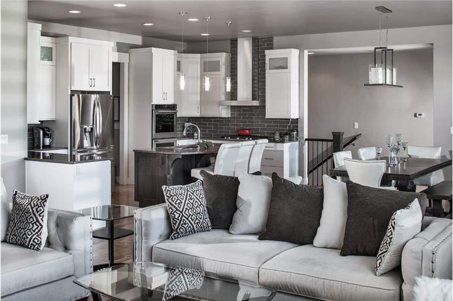 This Craftsman-Country style home has 2,650 heated square feet at the main floor and 1,821 optional heated square feet and 829 unfinished square feet in the lower floor level. The meticulous play of natural material set on clean straight lines imparts a modern feel to this house.