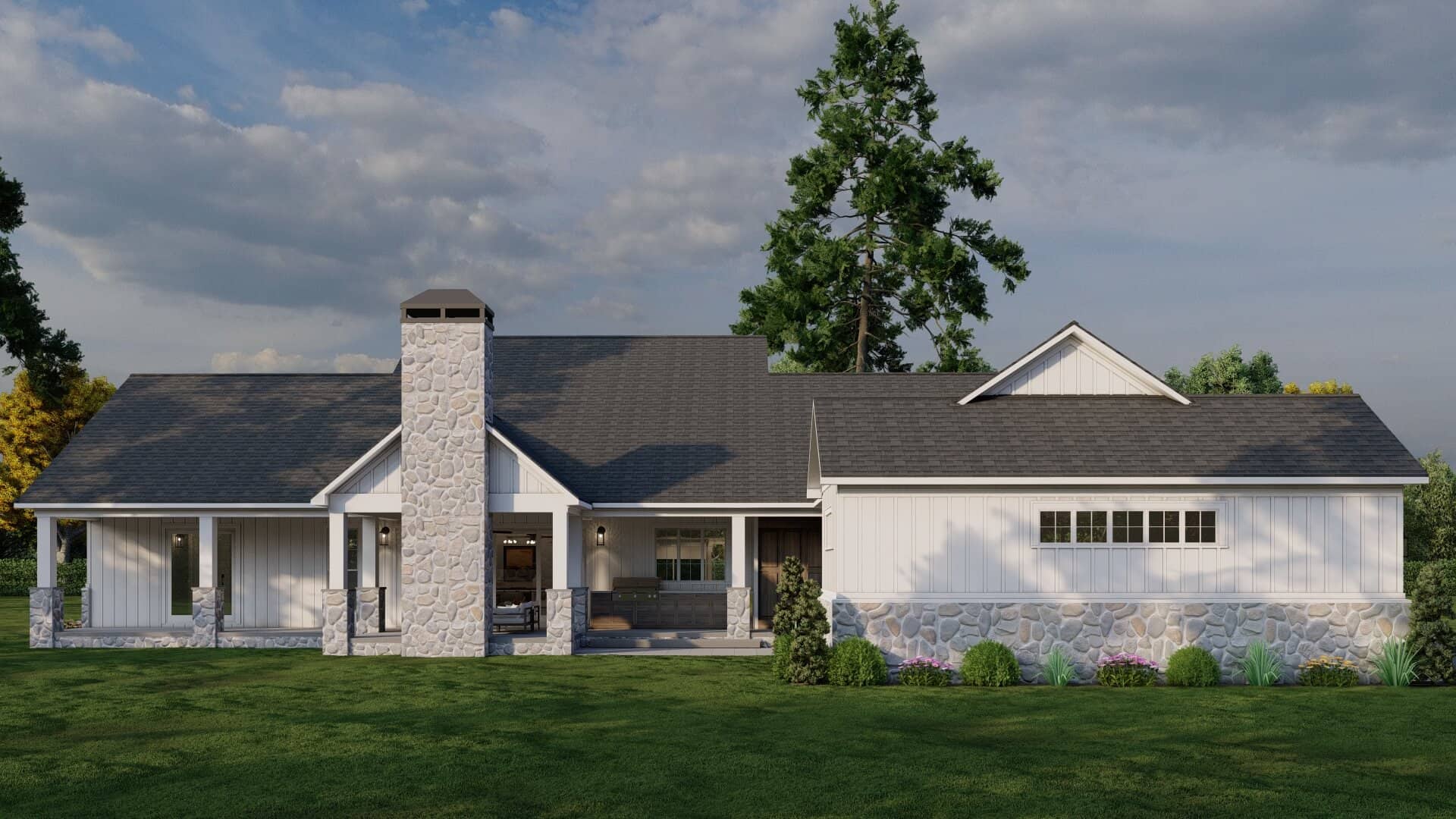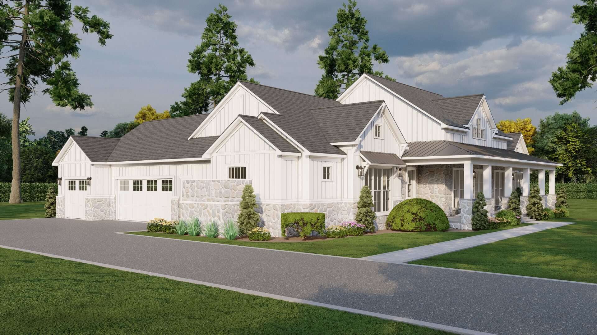 This charming Modern Farmhouse style house plan spans 2,650 square feet and includes 3 bedrooms, 3.5 baths, and a 3-car garage. Additionally, it features a delightful combination of elements, representing sophistication in every corner: