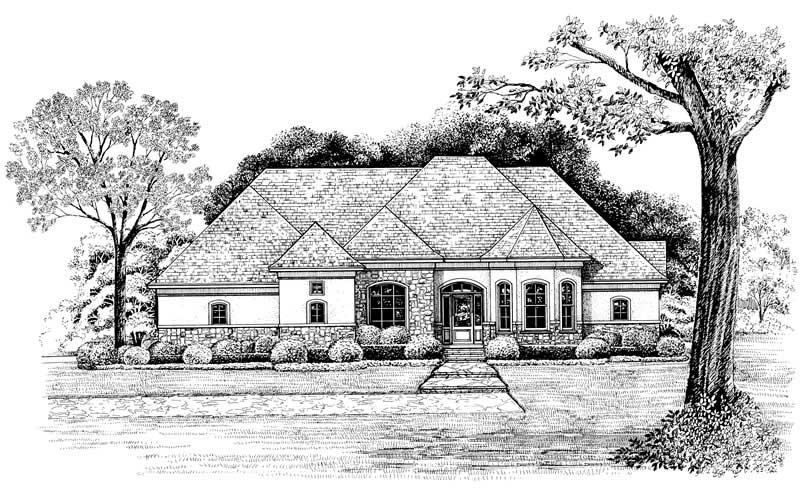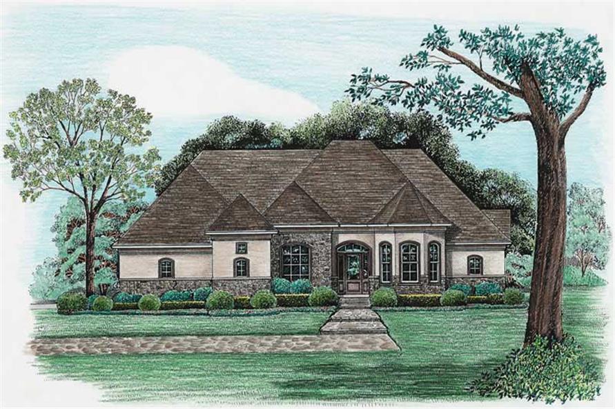 #120-1963 is a House Plan that shows a perfect representation of European Style Home Design. On either side of the front porch entry are the Dining Room and Study, both bathed in sunlight from beautifully arched windows. The family Room with its warm fireplace and 12 foot ceilings leads either to the Kitchen/Breakfast room or the cheery porch located in the back. Also with access to the porch is the Master Bedroom and its private bath and spacious walk-in closet. And, to make this house even more a home, this design features three additional bedrooms; perfect for the whole family.