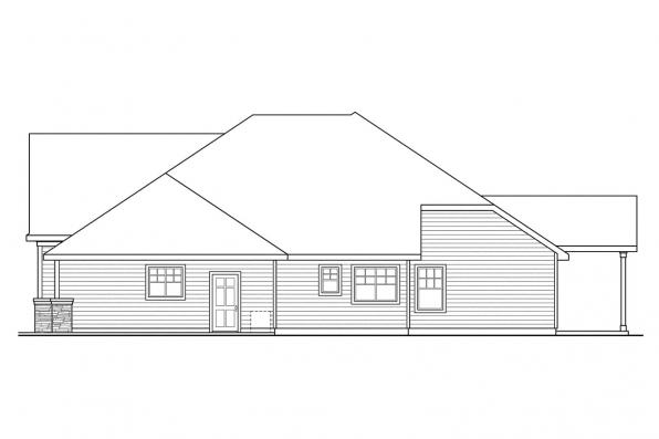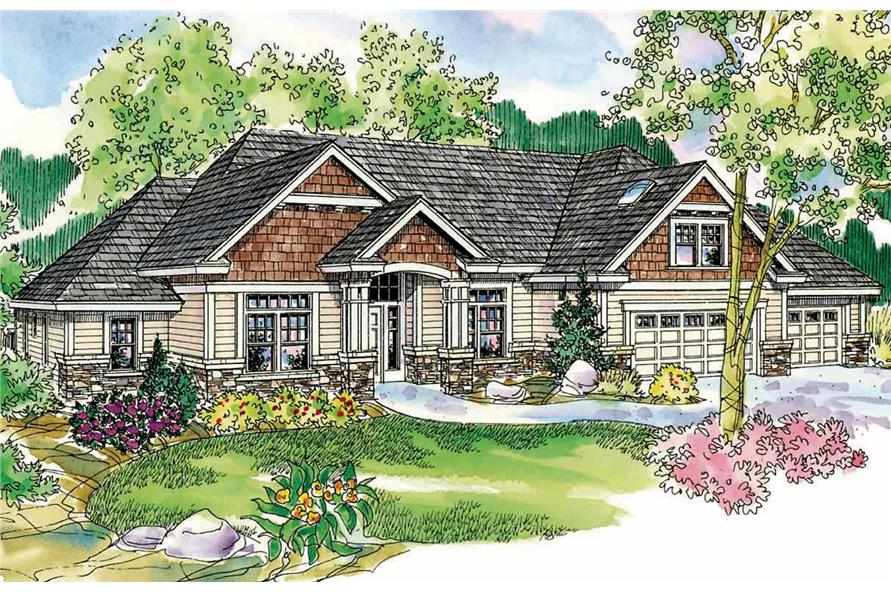 Ranch Home Plans - The sleek and gently curved arch fronting the entry porch extends a stately yet unpretentious welcome to this ranch home plan. In the bright and spacious family living area, the living room on the left is balanced by, and open to, the comfortably large kitchen and nook on the right. The deluxe owners suite boasts a deep soaking tub and an exceptionally elongated walk-in closet.