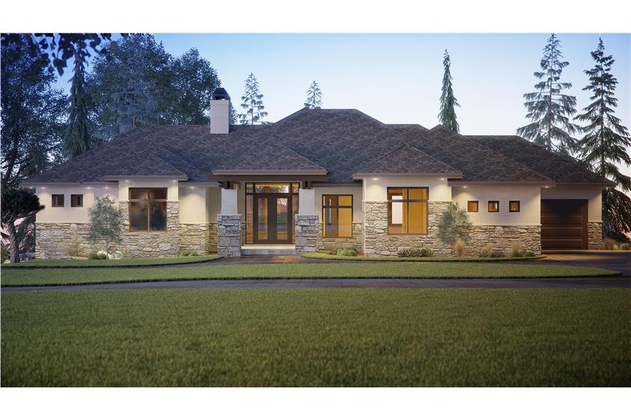 Enjoy the modern living of this Contemporary Ranch style home, which may well be your family’s first choice in your list of dream homes. The cozy covered porch on its front facade, varied asphalt-shingle-covered hip roof lines, interesting window choices, and combination of stone and stucco materials give this home an interesting character and attractive curb appeal. The captivating 1-story floor plan has 2691 square feet of heated and cooled living space and includes 2 bedrooms and an optional finished basement that adds...