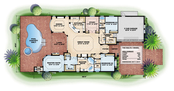 3-Bedroom, 2692 Sq Ft Mediterranean Plan with Den