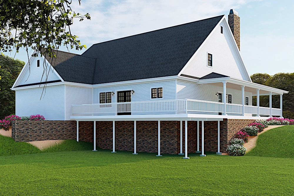 This striking Farmhouse style home with Country characteristics (Plan #193-1090) has 2711 square feet of living space. The 1.5 story floor plan includes 3 bedrooms.