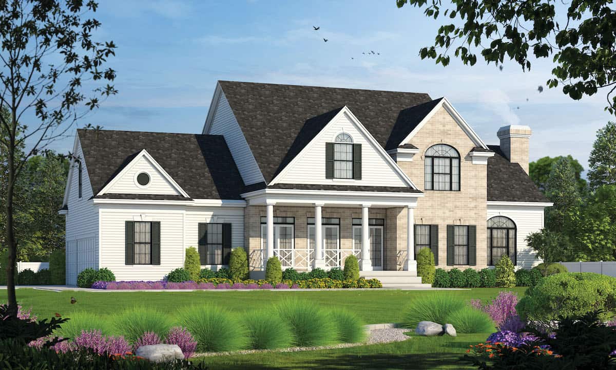 This dramatic Traditional style home with Colonial attributes (Plan #120-1964) has 2715 square feet of living space. The 2-story floor plan includes 4 bedrooms.