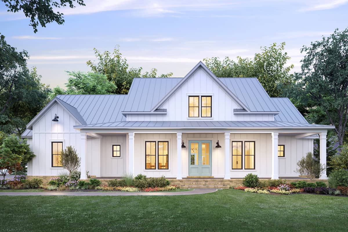 If you have an eye for great design, you'll be amazed by this contemporary farmhouse with its white vertical siding, cross gable roof, and covered wrap-around entry porch. Stepping inside, you’ll also love the open and airy feel of the house, with its variety of large windows making the rooms brilliant and bright and the open floor plan, which is great for entertaining. This luxurious 1-story floor plan has 2716 living square feet (3407 living square feet with the bonus room as finished) and includes 4 bedrooms. Other special features of note...