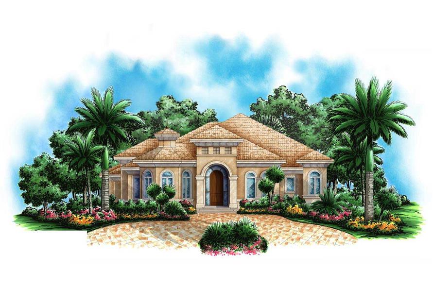 This Home Plan is perfect for a narrow corner lot. Only 62 feet wide, this house design features many interesting angles and lots of ceiling designs adding to the character of this floor plan. An octagonal dining room is just to the left as you enter and the study is to the right. Then you walk into a very spacious great room that immediately overlooks the covered lanai and pool area. The dinette of this floor plan has a radial glass window allowing for maximum light and views from the kitchen. A great corner lot home plan.....