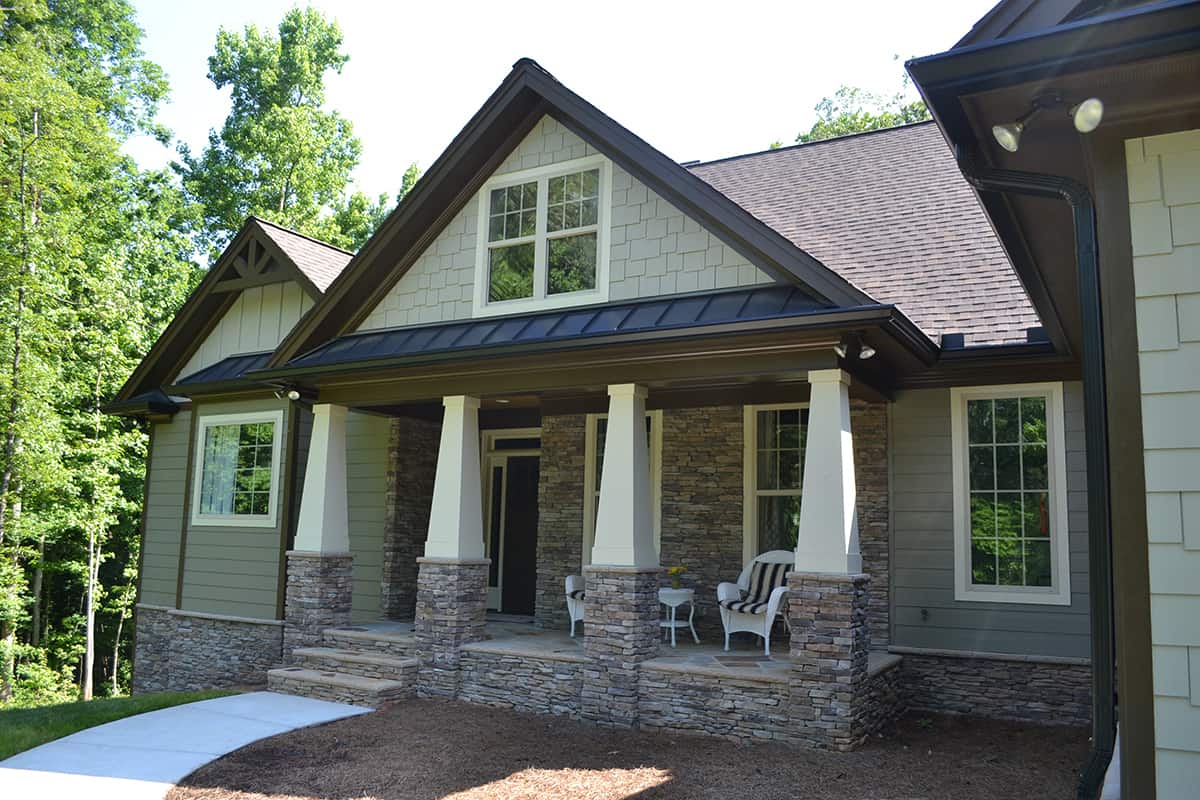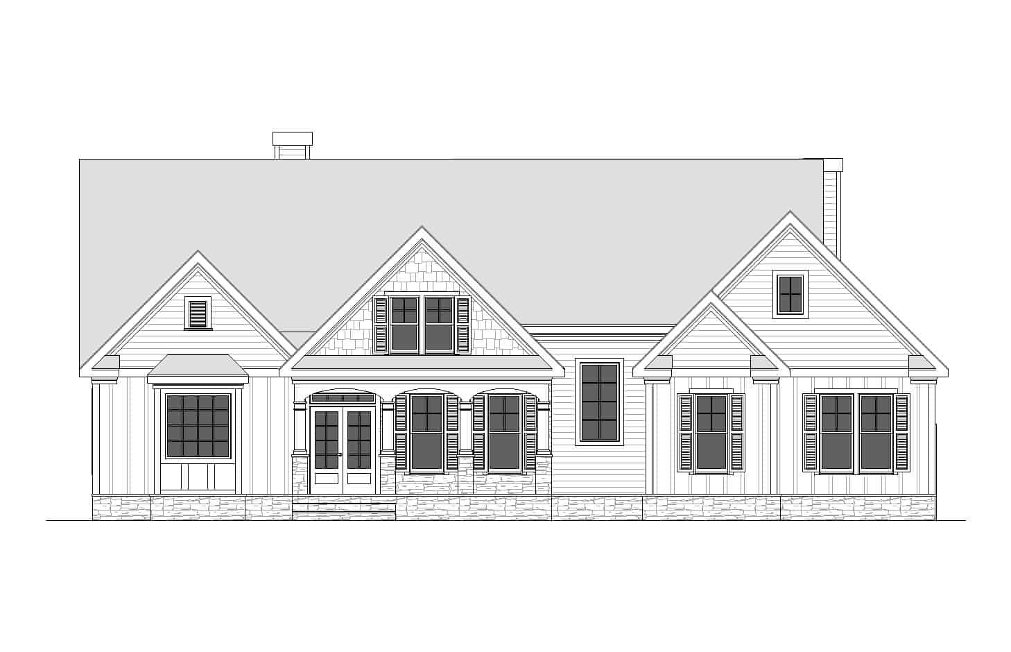 This Craftsman house plan displays a gorgeous covered front porch with forwarded gables, stately columns, and a combination of natural stones, and wood giving this house its great curb appeal. The front covered porch also provides a generous width, which could be an area for gathering on warm evenings. The beautiful 1.5-story floor plan has 2760 square feet of heated-cooled living space with a 1444-square-foot basement for future development. The 500-square-foot 2-car garage has extra space...