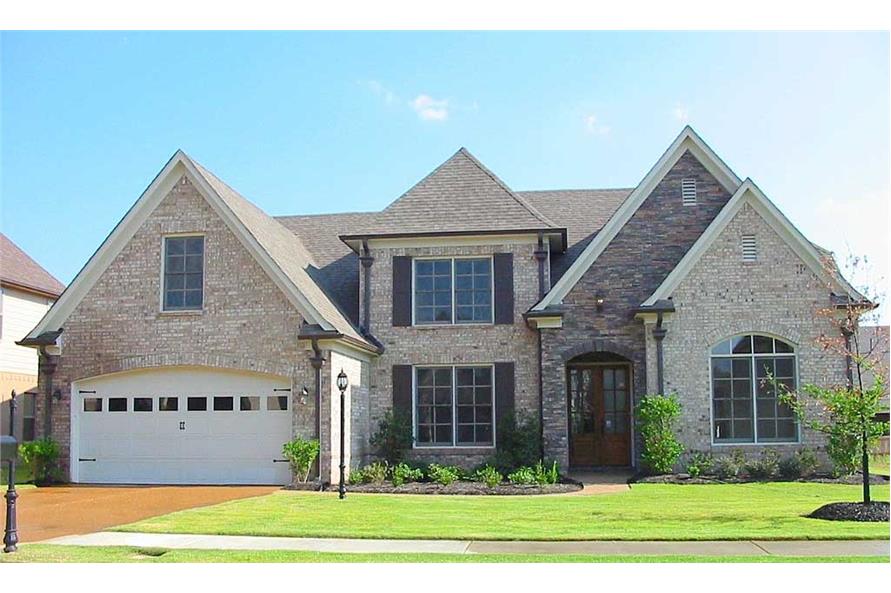 This French Country Design has a big front loading garage that contrasts the rest of the facade. The floor plan has a living space that has a master suite to contrast it.
