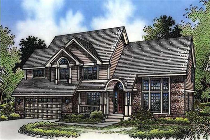 From the covered front porch with columns supporting a round copper roof, guests enter to an interesting view of an angled staircase. To the right of the entry is a vaulted living room with transom windows and half-walls with column dividers. The formal dining room is just beyond another pair of half-walls with columns. The angled kitchen features a spacious walk-in pantry and overlooks a diamond-shaped breakfast room and vaulted family room with fireplace. A main-floor den has private access to a 3/4 bath to accommodate overnight guests or in-laws. There are four bedrooms and two full baths...