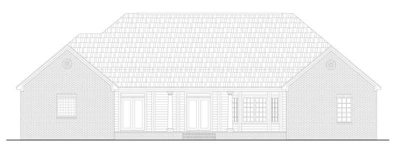 This enthralling country ranch home (House Plan #141-1130) has 2805 square feet of living space. The 1-story floor plan includes 4 bedrooms and three bathrooms in a split bedroom layout configuration. The foyer opens up to the Great Room with its fireplace as a focal point. Double glass-doors flank either side of the fireplace and lead out to the covered porch. The kitchen has a raised eating bar and breakfast nook and is just steps away from the formal dining room. The two-car garage also includes a storage bay — perfect for a lawn tractor, bikes, or other recreational...
