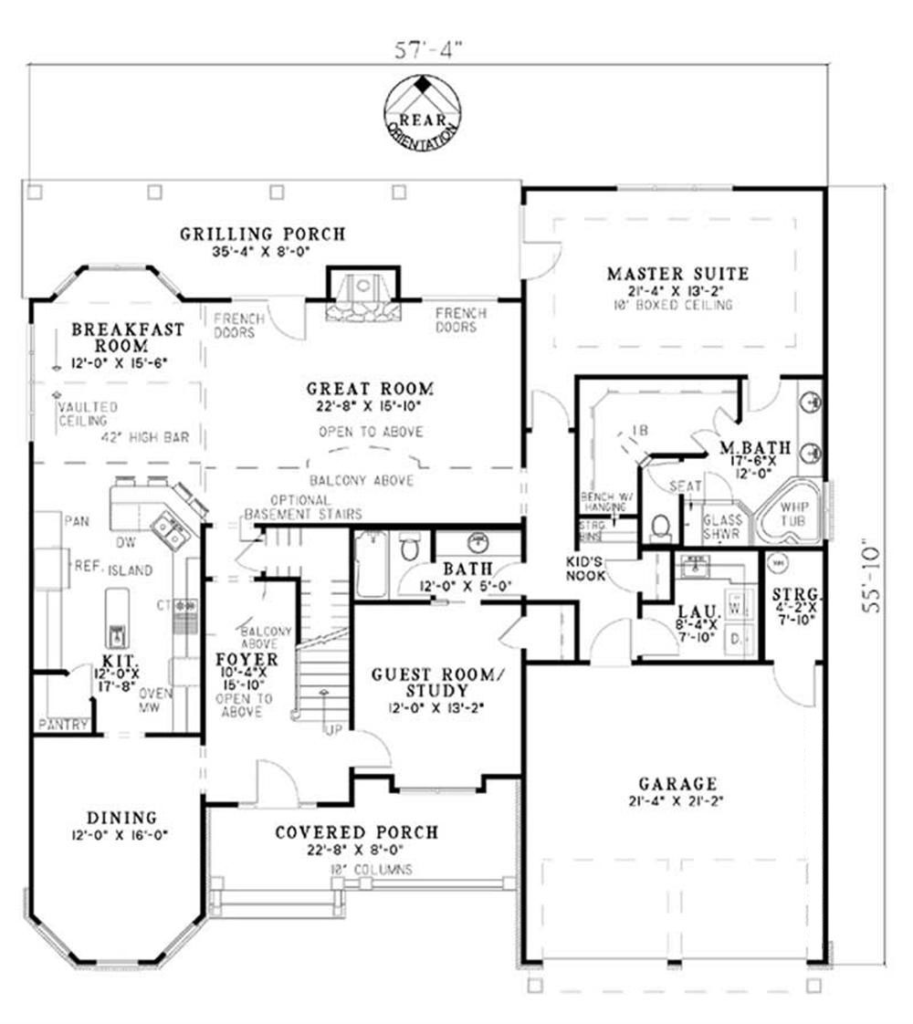 4-Bedroom, 2815 Sq Ft Craftsman Plan with Master Bathroom