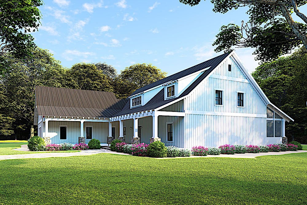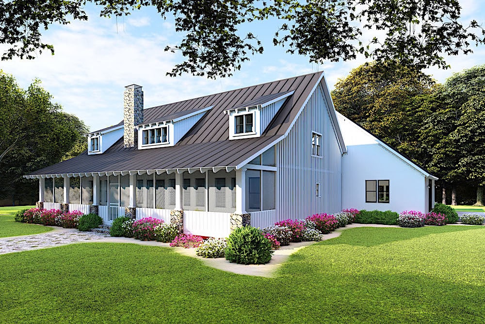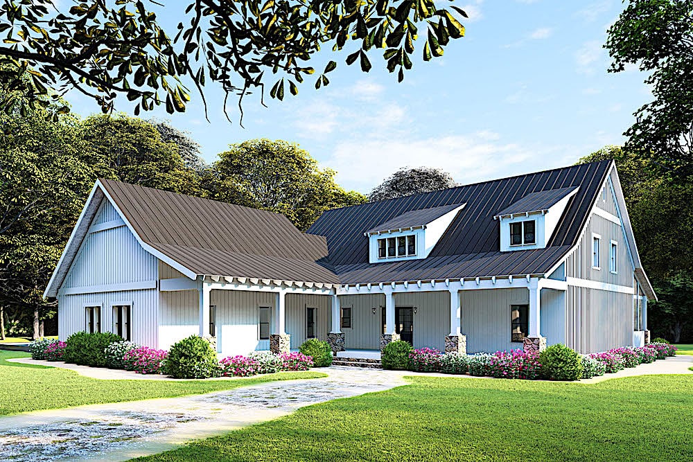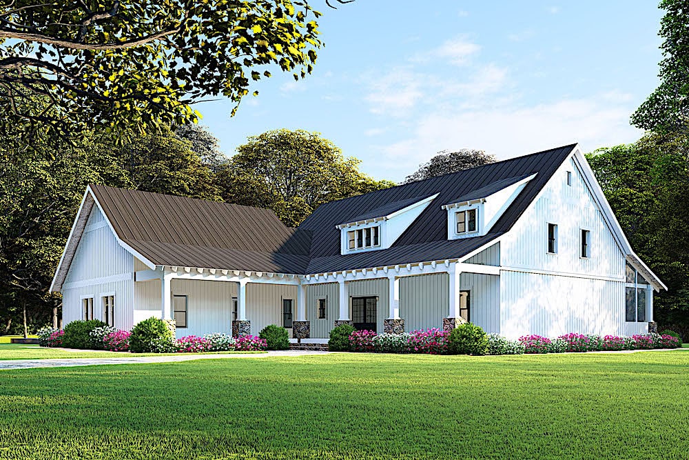 This lovely Farmhouse style home with Country influences (Plan #193-1092) has 2860 square feet of living space. The 1.5 story floor plan includes 5 bedrooms.