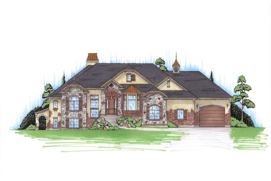 This European plan features a great room/kitchen combo that has a wonderful looking vaulted ceiling. A large bonus room is the only thing on the second story. The basement, on the other hand, has three bedrooms and a game area with a wet bar on the side.