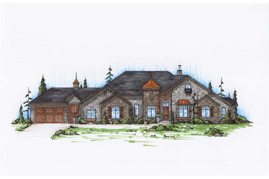 This mountain style plan has a unique garage that wraps around allowing four cars under its shelter. The floor plan features a master bedroom with access to two walk-in closets.