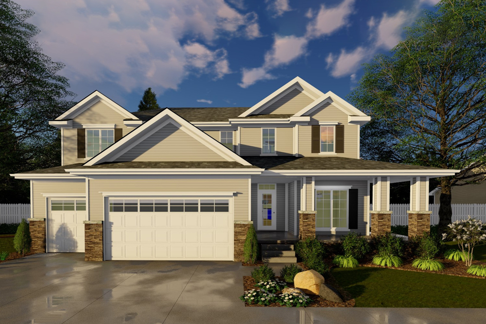 This lovely Traditional style home with Prairie influences (House Plan #100-1221) has 2906 square feet of living space. The 2 story floor plan includes 4 bedrooms.