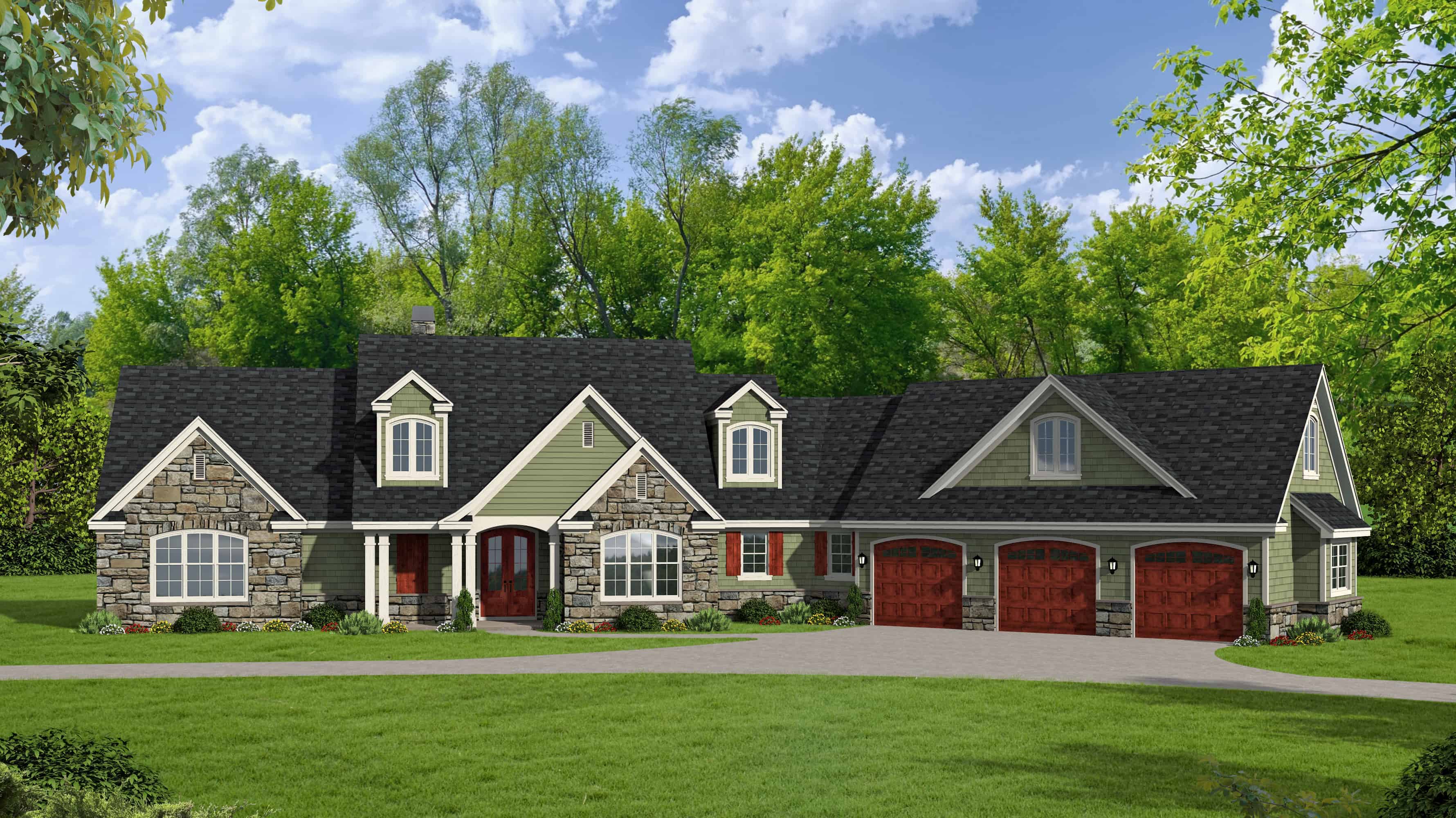 This stunning Craftsman style home with European qualities (Plan #196-1153) has 2950 square feet of living space. The 1.5-story floor plan includes 3 bedrooms.