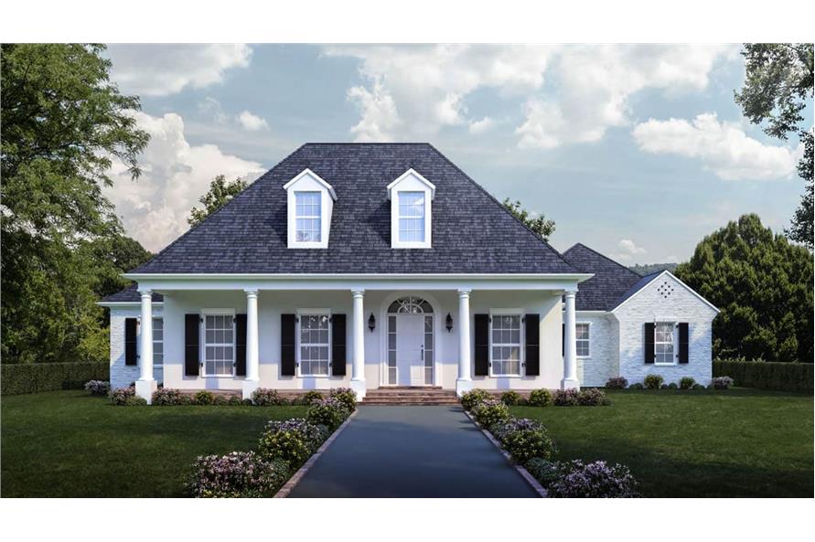 This house is designed in a Southern Ranch style that suggests Antebellum living, with its colonnaded porch like a mini Plantation home. The decorative dormers on the hip roof, those magnificent windows, and the subtle play of columns on the front porch provide this home an interesting character. The house has a heated-cooled area of 2963 square feet with an oversize 3-car garage with side entrance located at the back part of the house.