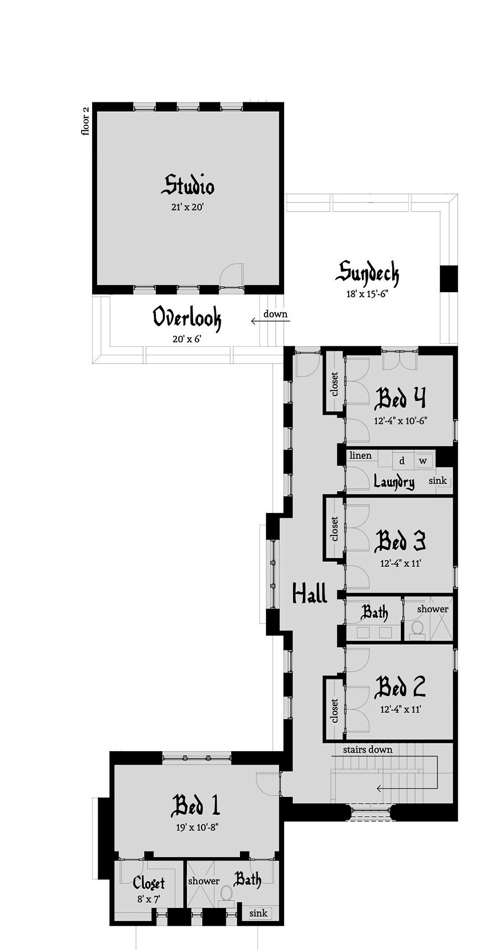 This lovely Historic style home plan with European Castle influences (House Plan #116-1116) has 2966 square feet of living space. The 2 story floor plan includes 4 bedrooms, 2 bathrooms, and 1 half bath. The exterior walls are constructed of 2x6 wood framing and are faced with stone.