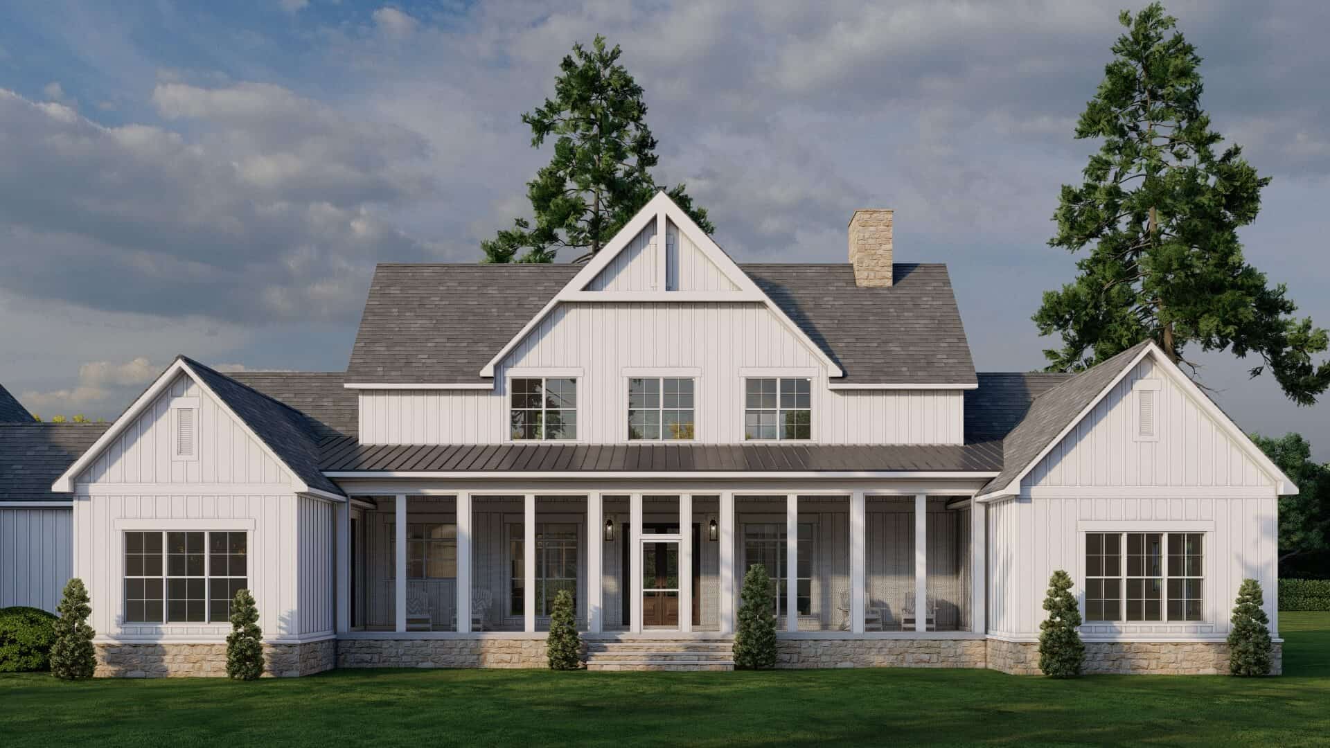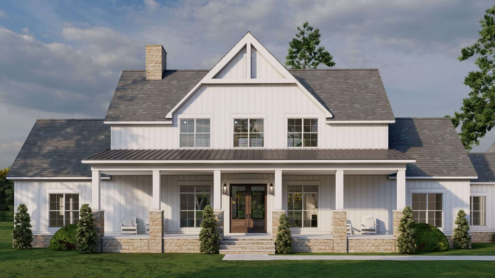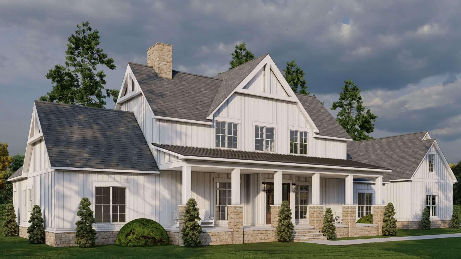 Embodying timeless beauty, this Farmhiuse style house plan spans 2,972 square feet and includes 3 bedrooms, 3.5 baths, and a 2-car garage. Plus, it delivers a delightful mix of features, representing refinement in every detail: