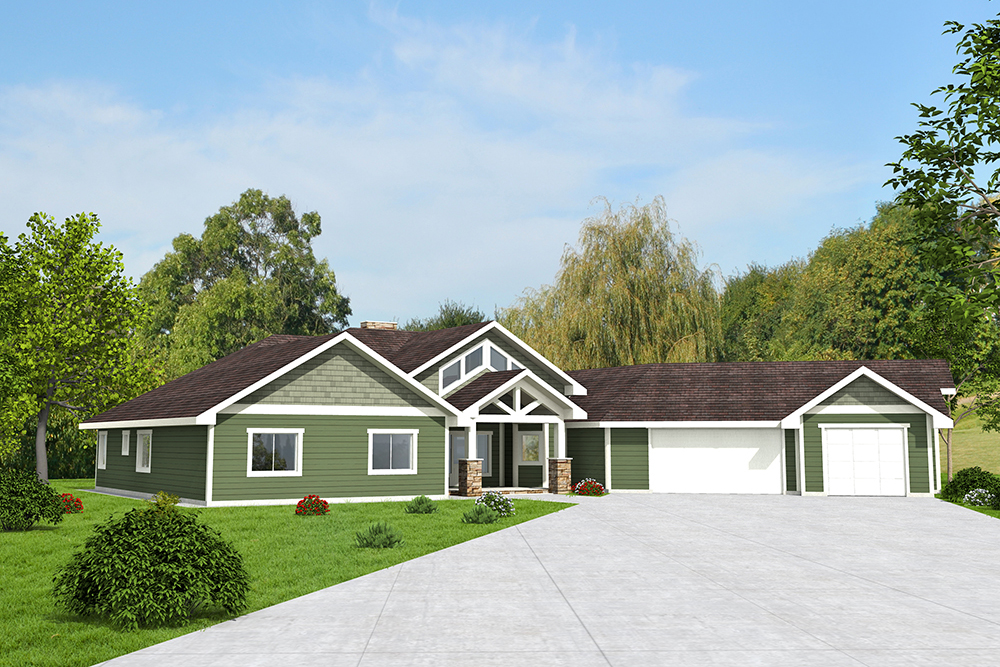 This remarkable Craftsman style home has 2983 square feet of living space. The one-story floor plan includes 3 bedrooms and 2.5 bathrooms. The exterior of this home has a graceful covered front porch. Inside, this house design's floor plan includes a well-designed main floor master.
