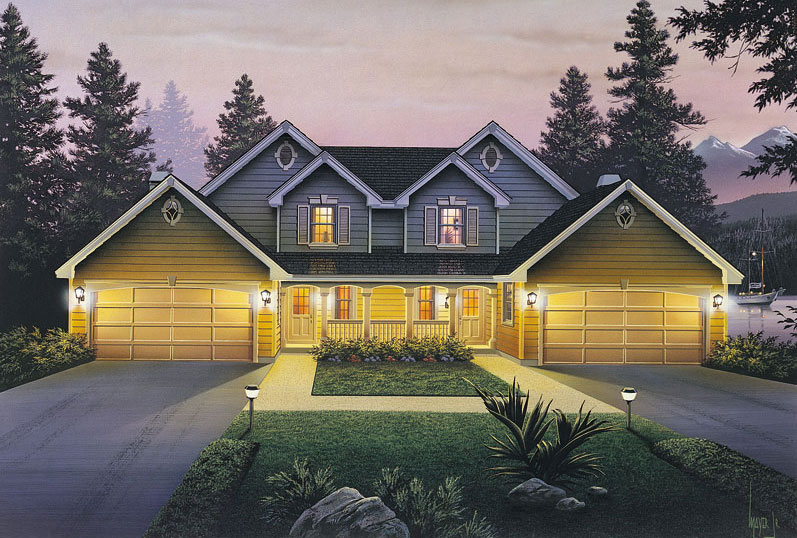 This lovely Multi-Unit style home with Farmhouse influences (Multi-Family House Plan #138-1055) has 2986 square feet of living space per unit. The 2 story floor plan includes 6 bedrooms per unit.