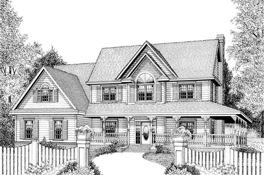 This plan offers an inviting and versatile space. There's a three car garage and workshop, with two covered porches on the exterior. The interior has large rooms with several options. See also plan E161.