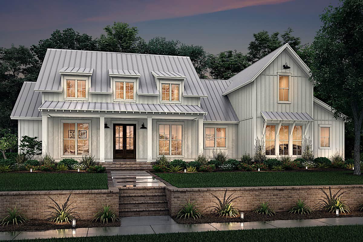 If you have an eye for great design, you'll adore this Contemporary Farmhouse style home with white vertical siding and covered entry porch with stately columns and generous width, which could be an area for gathering on warm evenings. The wonderful house also provides spacious rooms that every member of the family will surely love. This well-done 1-story home's floor plan has 2989 square feet of heated and cooled living space and includes 4 bedrooms, plus