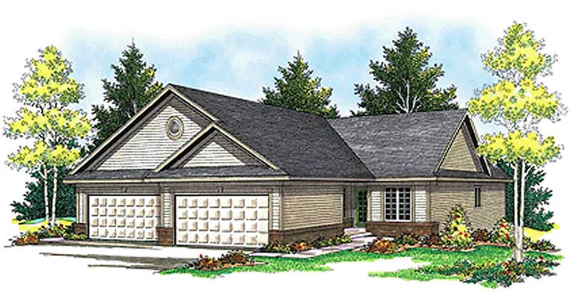 This multi-unit house plan has very traditional and pleasing floor plans, no one would be unhappy with this set-up. The total square footage, width, depth, and pitch are all both units combined. Main floor square footage A:1435 B:1563