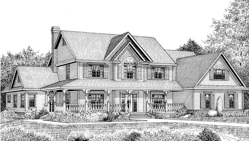 This house offers a space conscious floor plan with traditional country victorian style. The main rooms are spacious, including the first floor master suite with duel porch access. The upper floor has three bedrooms, a rec room, and unfinished bonus and storage rooms. See also plans E162, F161X, and F161g3.
