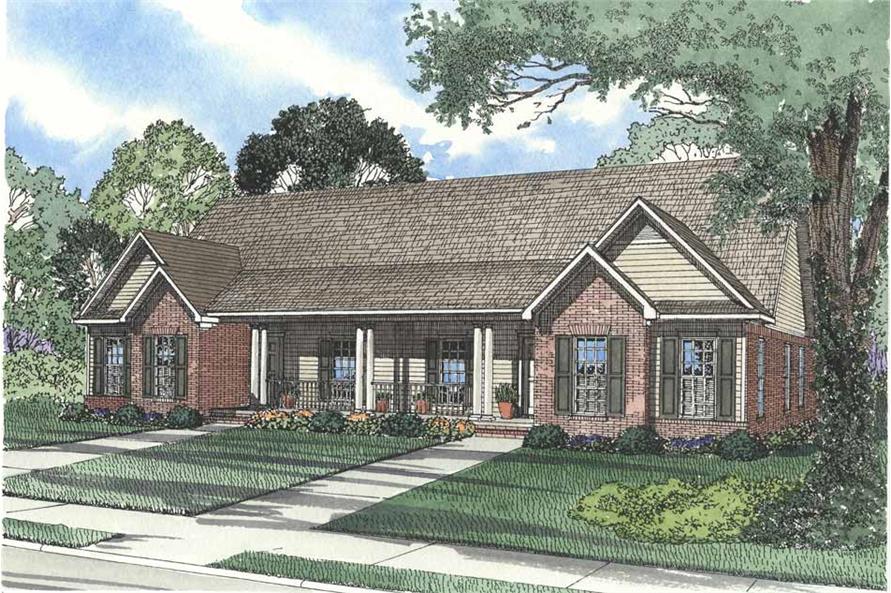 This attractive duplex home has such great curb appeal with its gable rooflines and long porch. The two-unit plan has a total of 3026 living square feet with each unit having 1513 living square feet, 3 bedrooms and 2 full bathrooms.