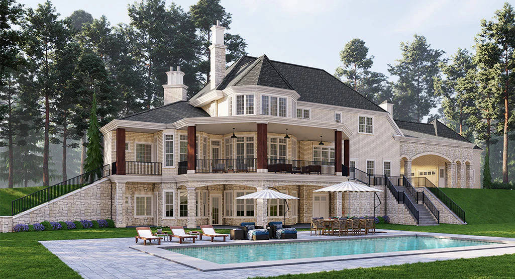 This stunning 4-bedroom, 3027 square feet European plan with a 5-car garage home design is a classic European style has an exterior made of stonework or brickwork, adding a sense of luxury and sophistication. The main living area is an open concept space that includes a great room with vaulted or volume ceilings, a fireplace, and large windows that bring in plenty of natural light. The gourmet kitchen features a large island and a walk-in pantry, an eating bar, which is perfect for casual dining or entertaining guests. The first floor master suite is spacious and luxurious, with a...