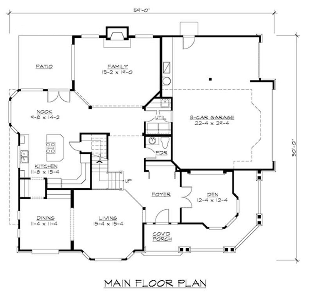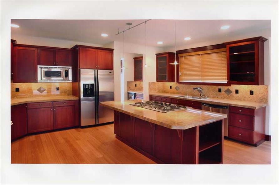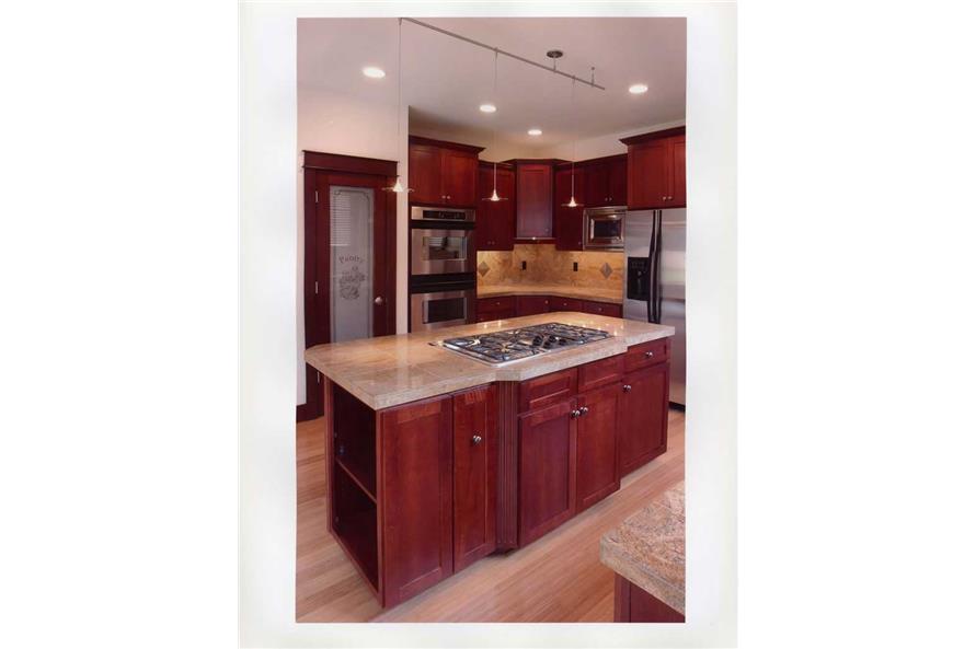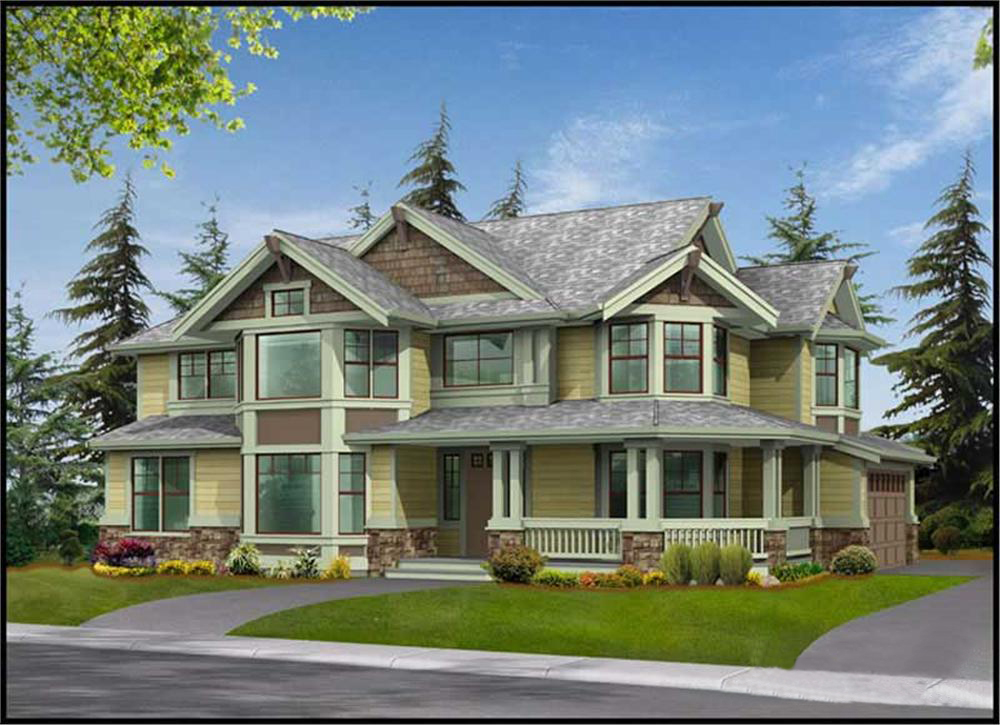 Enter this beautiful updated Arts and Crafts house plan from the large covered front porch. Classic features of the home plan include such exterior details as the columns, rafters, trim, windows, and rock base. The open floor plan has few hallways, formal living and dining rooms, family room with fireplace, main-level laundry room, and more, with plenty of opportunity for woodwork and craftsmanship. The large U-shape kitchen has a functional island, breakfast nook, and walk-in pantry.