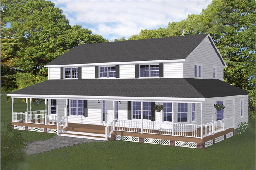 This lovely Farmhouse style home with Country influences (#200-1025) has 3130 square feet of living space. The 2 story floor plan includes 5 bedrooms.