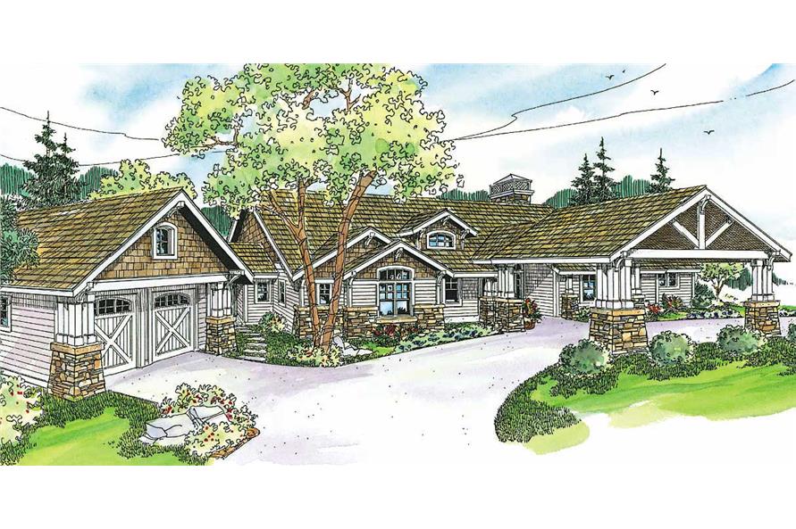 This single-story Craftsman Style design has 3199 total living square feet. The dramatic, vaulted Porte-cochere draws eyes to this single-level craftsman home plan. The richly windowed living room with a fireplace opens to the kitchen and bayed dining area. The utility room/mud hall has a deep sink, walk-in pantry, bench seat, and broom closets.