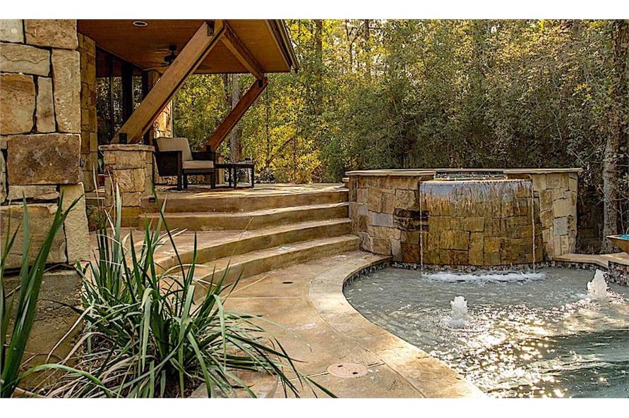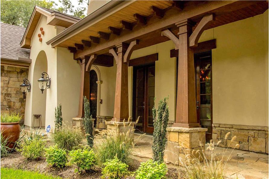 This luxury Cottage style plan is like an enchanted getaway in the forest. The tower suggests its fairytale aspect, while the rugged stone and timber touches give it a rustic feeling. Enter from the covered front porch/veranda after skirting the front courtyard. You'll see a large open floor plan with rustic country touches, from the dining room on your right, with its timber ceiling, to the massive stone fireplace in the voluminous family room and the large country kitchen and breakfast nook past a wide arched opening.