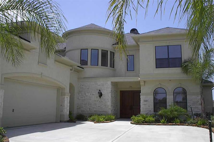 This lavish Mediterranean house design has 3,251 square feet of living space. The two-story floor plan includes 3 bedrooms and 3 bathrooms.
