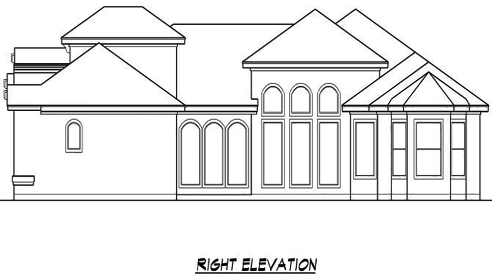 This lovely Mediterranean style home with Tudor influences (House Plan #195-1091) has 3260 square feet of living space. The 1 story floor plan includes 4 bedrooms.