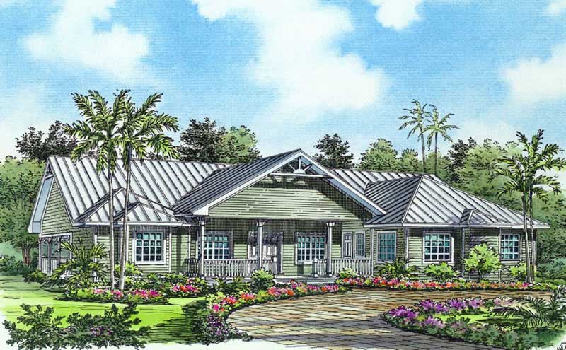 Front elevation of Florida Style home (ThePlanCollection: House Plan #107-1019)