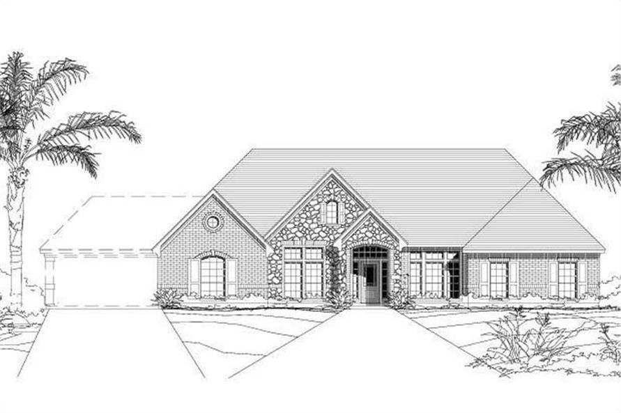 Home Plan #927-2 is a single story traditional style home with brick and stone exterior and 3311 total living square feet. It has 4 bedrooms, 3 baths, 2 living areas, and 2 dining areas. This house plan also has a master with sitting area and a separate master closet.